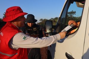 As ações também incluíram uma blitz educativa na MS-377, realizada em conjunto com o BPMRv. Durante as abordagens, motoristas de diferentes perfis — incluindo profissionais do projeto, condutores de outras empresas e usuários da rodovia — receberam orientações e materiais informativos.