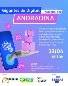 Empreendedores de Andradina e localidades vizinhas terão a chance de aprimorar seus conhecimentos sobre o comércio digital em um evento especialmente pensado… Leia a reportagem completa em: JBR Jornal Brasil Regional Continue sempre bem informado acessando nossos portais: Jornal Dia Dia – Sua fonte confiável para as melhores notícias eContinue Reading