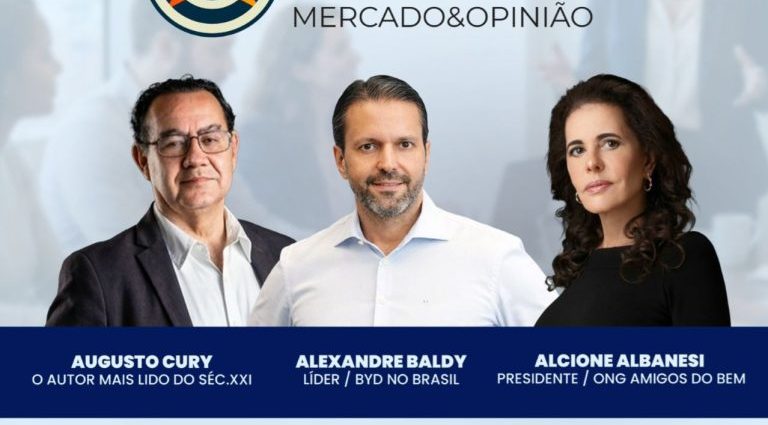 Entre os participantes estão o psiquiatra e escritor Augusto Cury, o executivo Alexandre Baldy, ligado à operação da BYD no Brasil, e a empreendedora social Alcione Albanesi, presidente da Amigos do Bem.