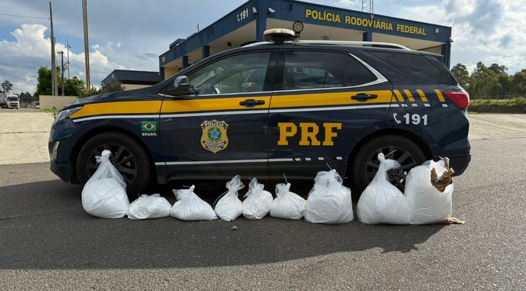 No interior do automóvel, foram localizados nove sacos plásticos contendo o pó branco, totalizando 111,3 kg.