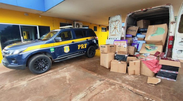 A Polícia Rodoviária Federal (PRF) apreendeu mercadorias de origem estrangeira, nesta segunda-feira (13), em Água Clara (MS).
